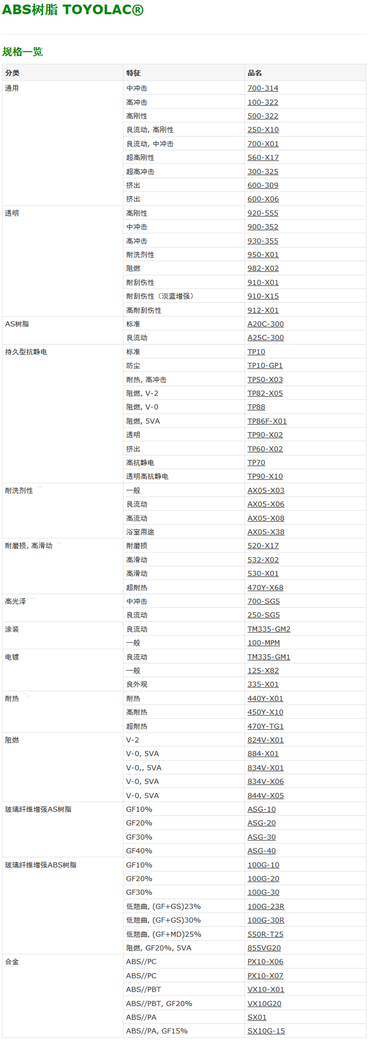 >> 日本东丽Toyolac系列ABS工程塑料
