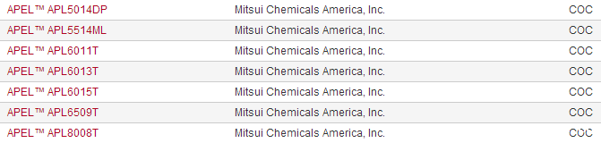 APEL不但具有优异防潮性、耐化学品性,且因其可通过γ射线及高压蒸气杀菌,非常适合做为医疗用途的包装容器,如: