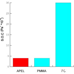 APEL的吸水率及因吸水造成的尺寸改变率极低,特别适合需高尺寸安定性的光学应用。