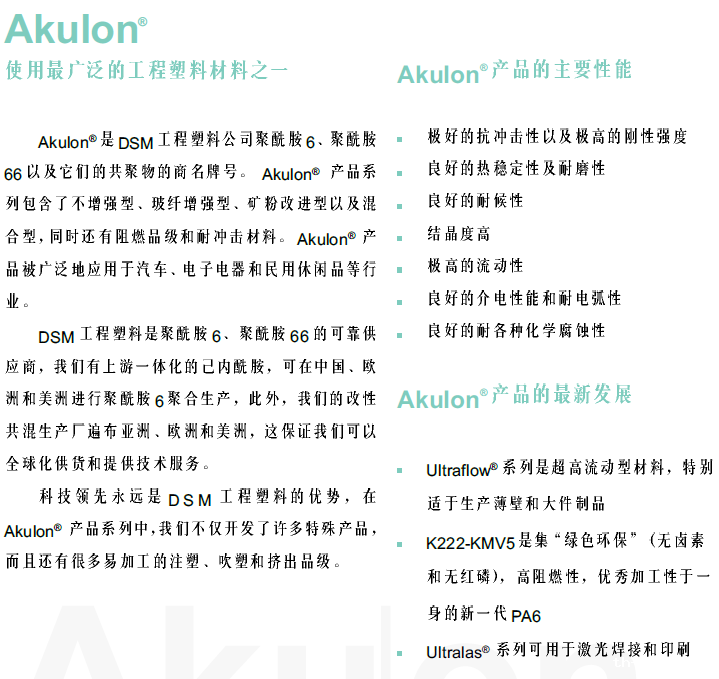 >> 荷兰DSM帝斯曼AKULON品牌系列尼龙66ac米兰app官网