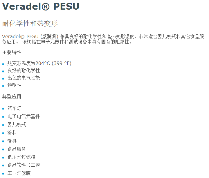 美国苏威VERADEL系列聚醚砜PES工程塑料应用