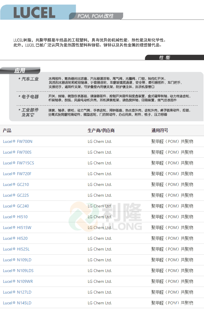 韩国LG(LUCEL)品牌聚甲醛POMac米兰app官网